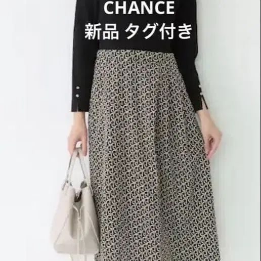 스커트 부분은 리본 테이프 문자풍의 2톤 프린트 패턴으로 가벼운 합성섬유 원단을 사용했으며, 턱으로 움직임을 준 쿠 드 샹스다운 디자인입니다.