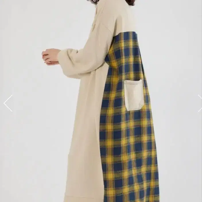 로데오 크라운 체크 도킹 원피스 아이보리 롱 원피스