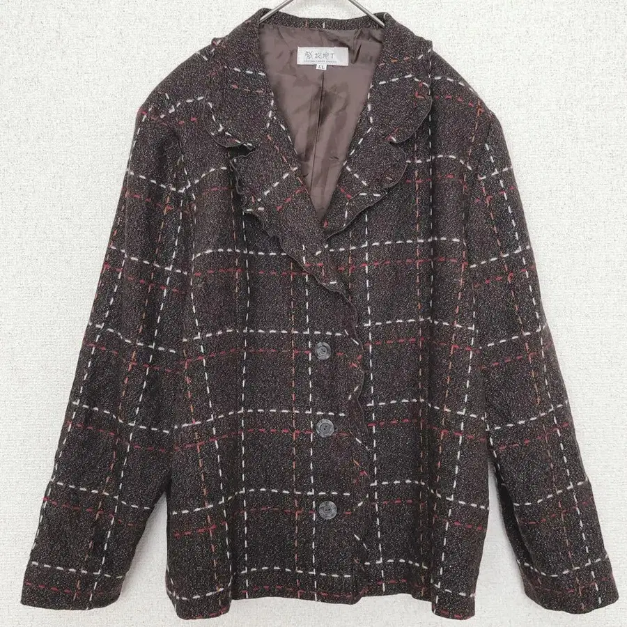 사슴|체크 무늬 테일러드 자켓 [ LL ] 프릴 라메 빅 사이즈