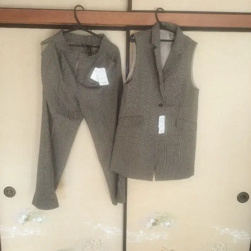 화이트 블랙 스트라이프 베스트와 팬츠 세트