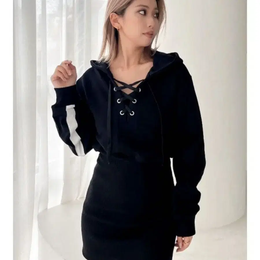 GYDA 프론트 레이스업 도킹 맨투맨 원피스
