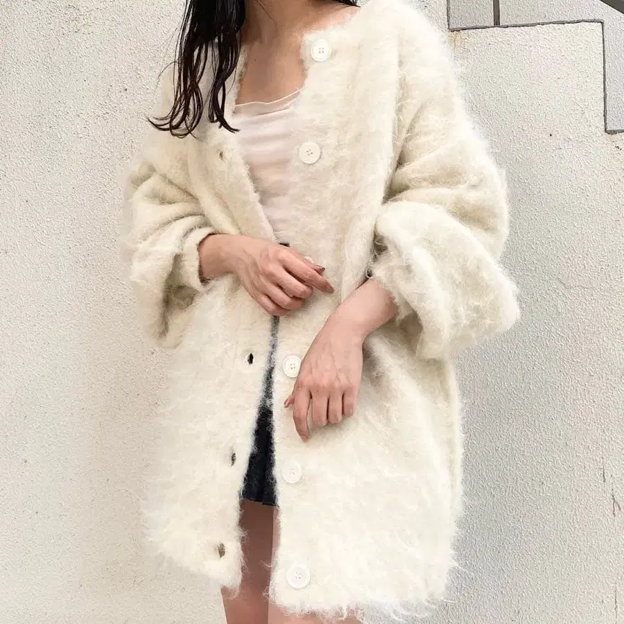 Chico(치코) 2way 샤기 루즈 니트 가디건 아이보리