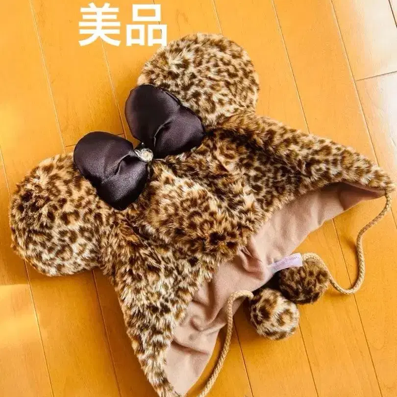 디즈니 미니 리본 레오파드 무늬 팬캡