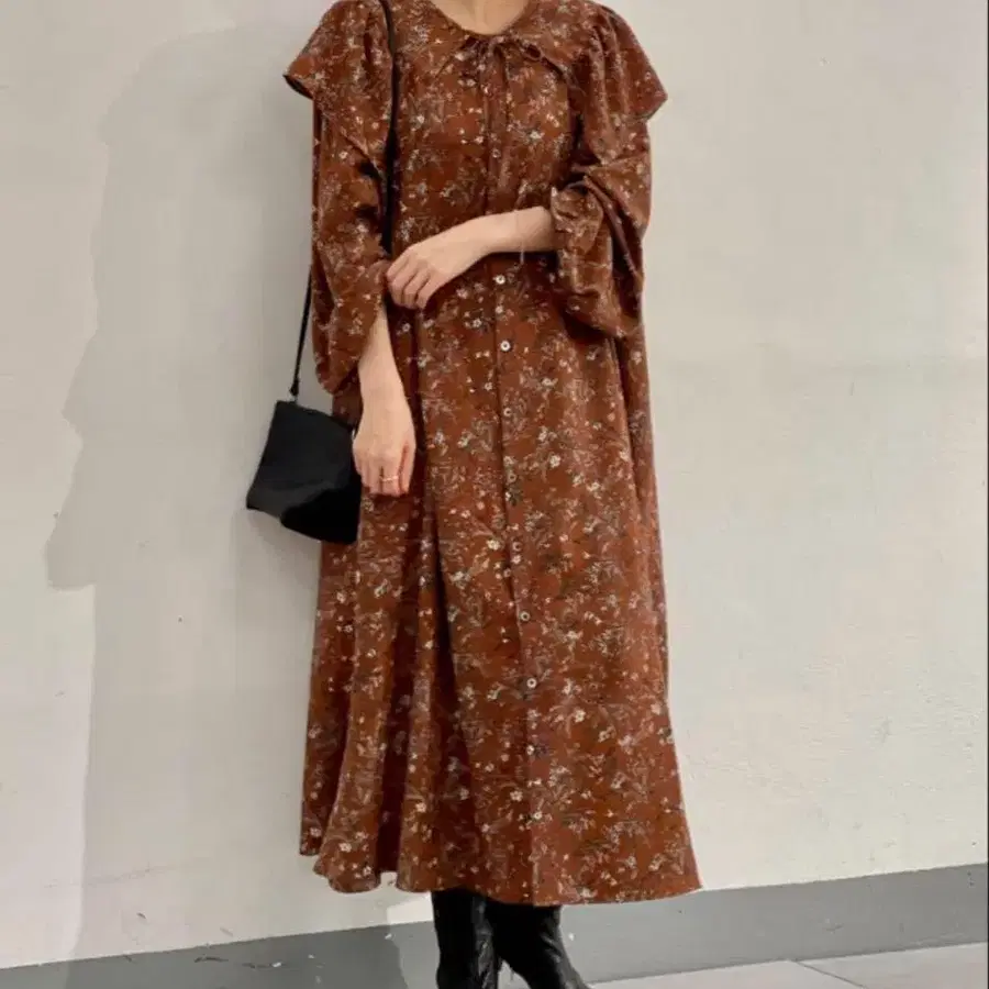 BEARDSLEY [ FRIPIER ] 카라 플라워 원피스 카멜 브라운