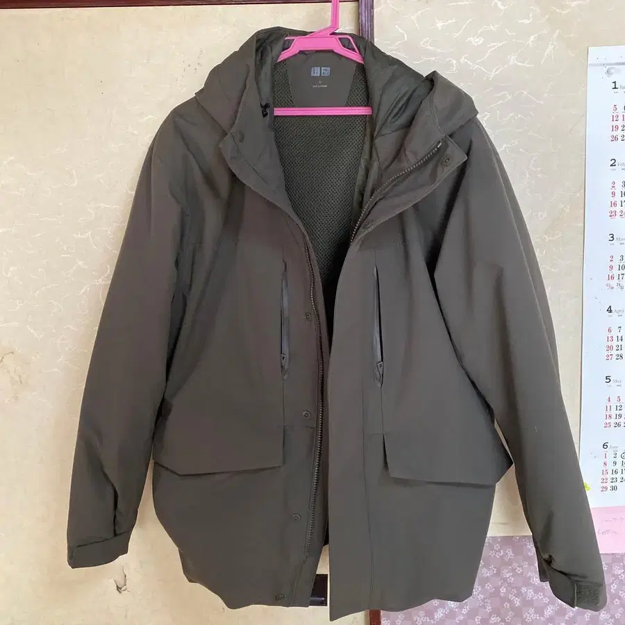유니클로 하이브리드 다운 파카 M 사이즈 올리브