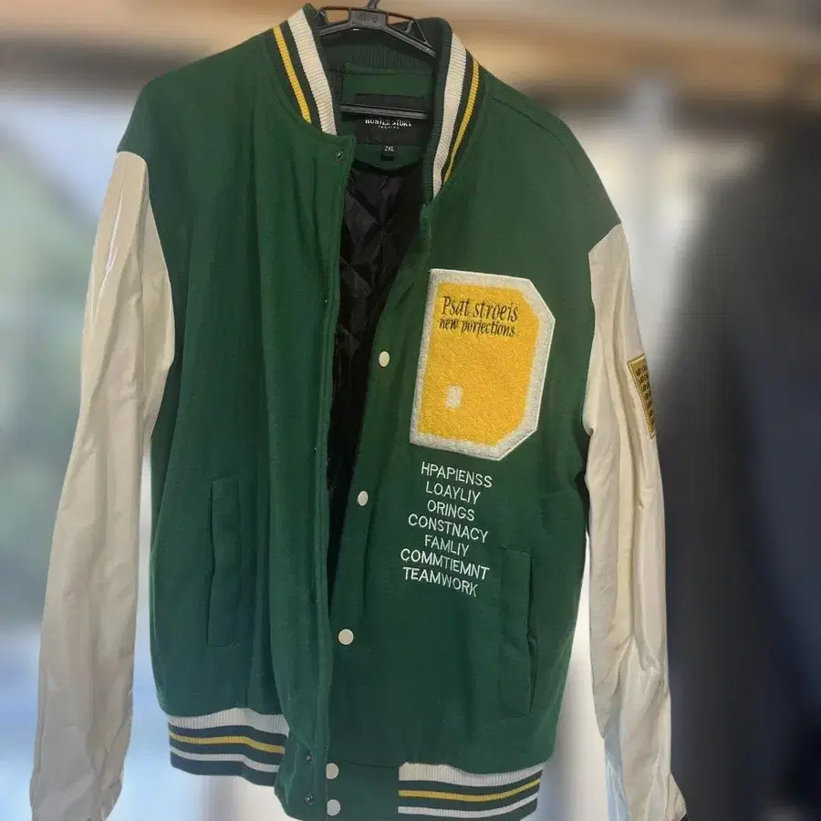 HUNTER STORY 바시티 자켓 2XL 그린/화이트