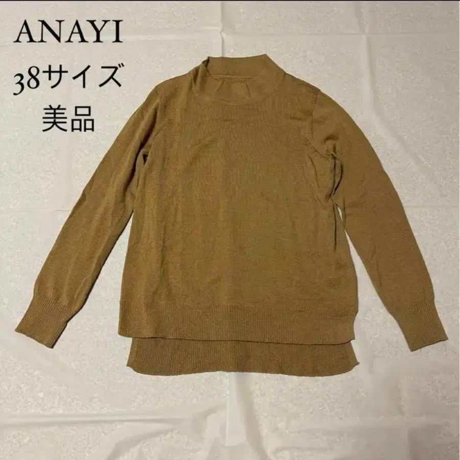 아나이 하이넥 울 니트 풀오버 상의 베이지 긴팔 M