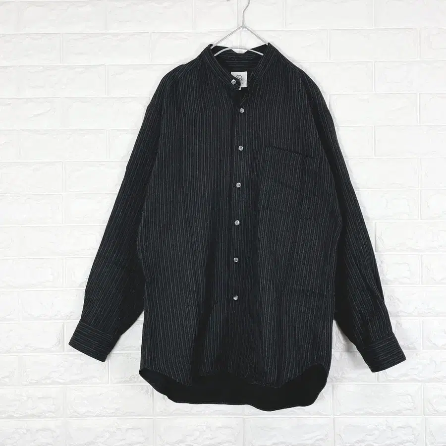 스트라이프 디자인의 밴드 카라 셔츠, 가슴 포켓이 있어 스타일리시합니다.