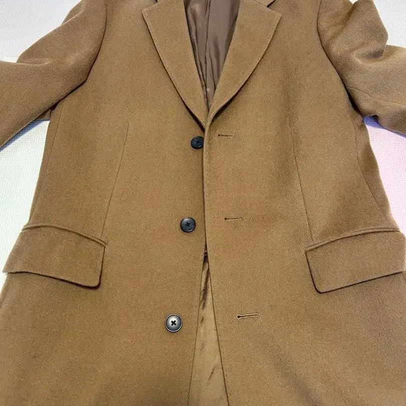 베이지 체스터 코트 3개 버튼 울 캐시미어 혼방