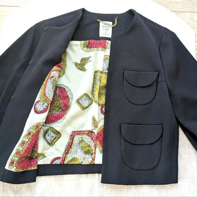 새상품 제인 마플 버드 스카프 노카라 자켓 네이비