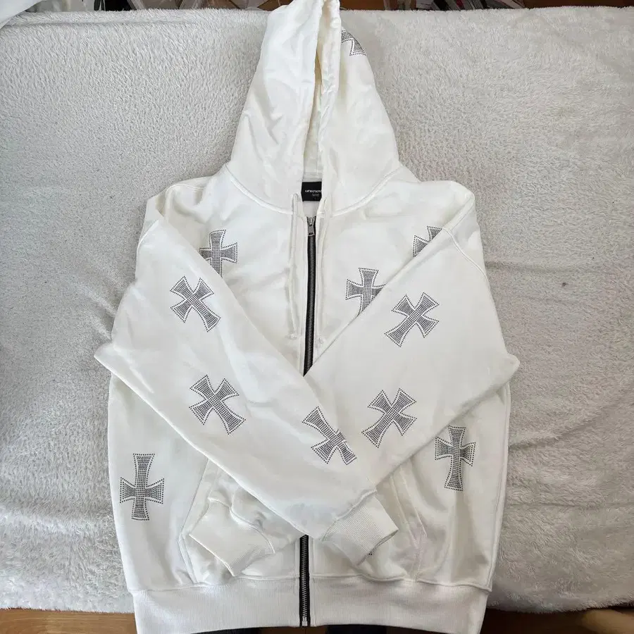 크로스 패턴 집업 후드티