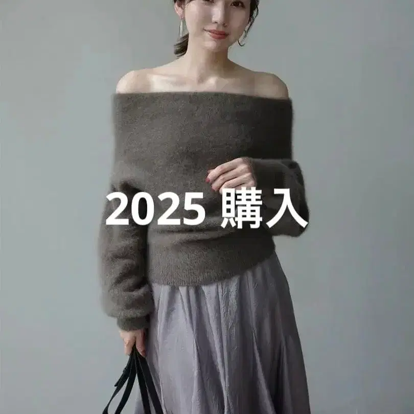 아뉴앙스 라쿤 폭스 오프숄더 니트 풀오버 moca