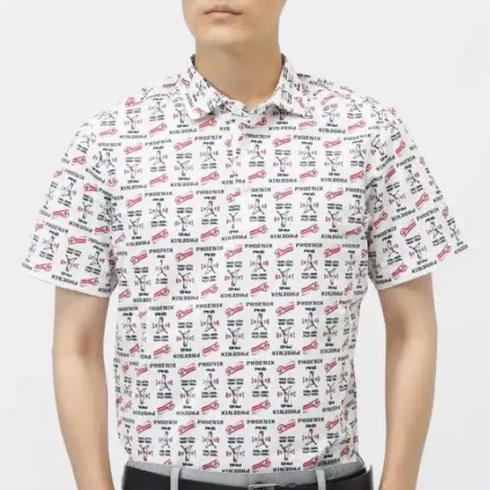 스타일리시! 도트 메쉬 올 패턴 반팔 피케 셔츠