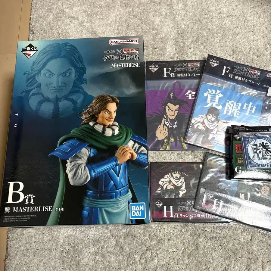제일복권 킹덤 춘추전국대전 The Animation 차세대 명장들 B상 피규어 등 F상 흡착판 플레이트 2개 (환기, 강외) G상 군기 러버 참 등 H상 캔버스풍 보드 2개 (등, 강외) 모두 새상품 미개봉입니다. ※ B상은 구매 당시부터 상자 끝이 약간 찢어져 있습니다. ※ G상은 내용물 확인을 위해 상자에서 개봉했습니다. 상자는 포함되지 않습니다. 자택 보관임을 이해해 주시기 바랍니다. 캐릭터명 - 강외/킹덤 콘텐츠명 - 킹덤