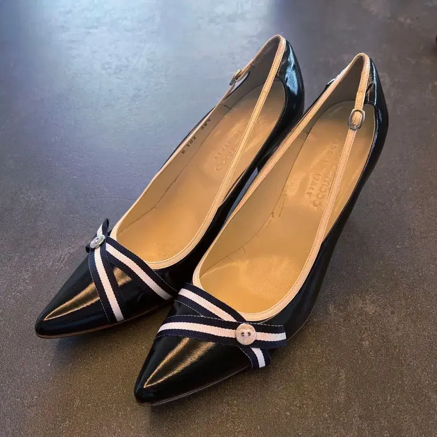 유나이티드 뱀부 24 네이비 에나멜 리본 포함 하이힐