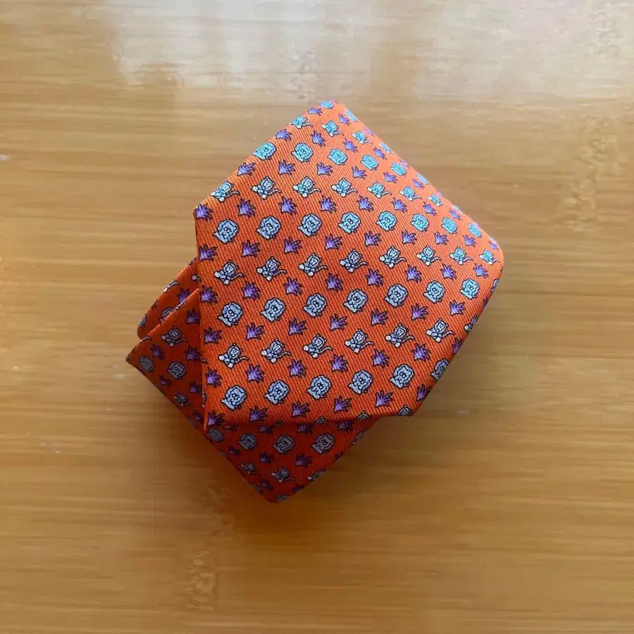 페라가모 Ferragamo 동물 패턴 넥타이 오렌지