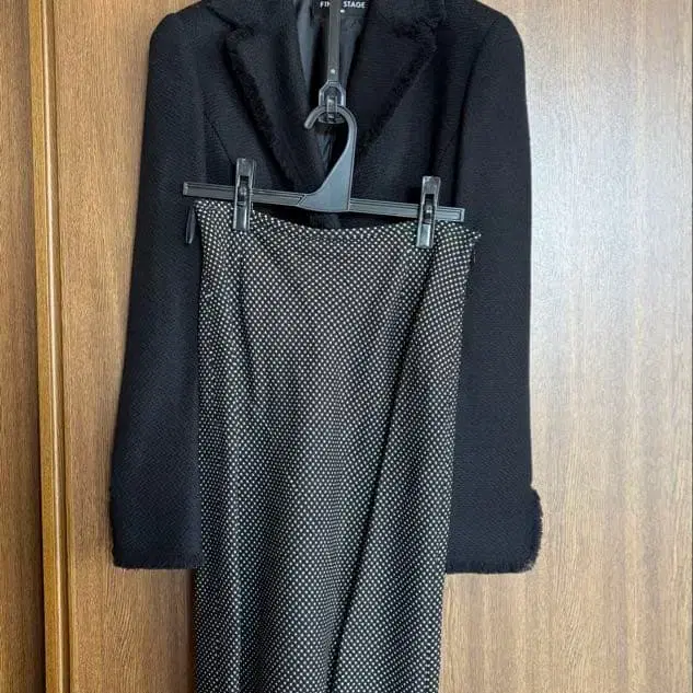 자동 번역되었어요. 원문보기FINAL STAGE (파이널 스테이지)의 블랙 여성용 자켓과 스커트 세트입니다. 트위드와 같은 질감으로, 옷깃, 플라켓, 밑단, 소매에 프린지 가공이 더해진 디자인입니다.