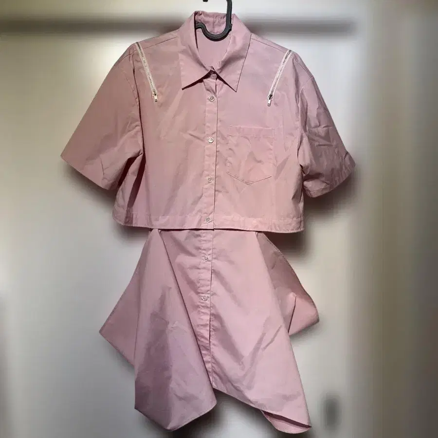 핑크 숏 기장 셔츠 원피스 반팔