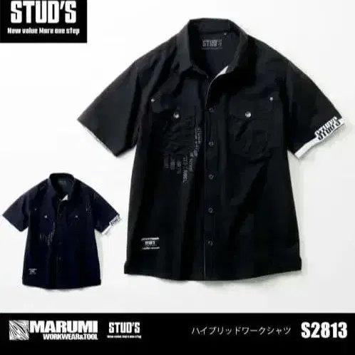 STUD'S 블랙 반팔 워크 셔츠 L 덤 포함