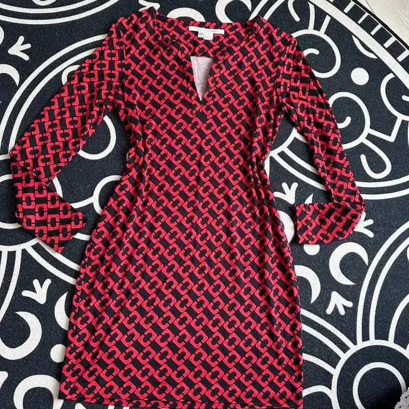 DIANE von FURSTENBERG 빨검 패턴 원피스 사이즈 2