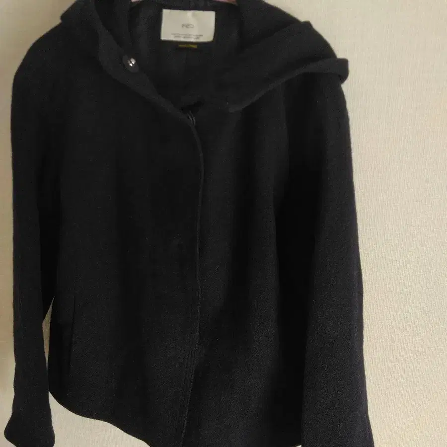 INED 후드 부착 네이비 숏코트