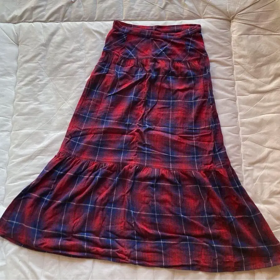 피플트리 오가닉 코튼 수제 체크 무늬 플레어 스커트 빨간색