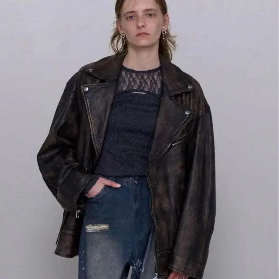 오버 사이즈로 입체적인 둥근 소매가 특징인 라이더 자켓입니다.