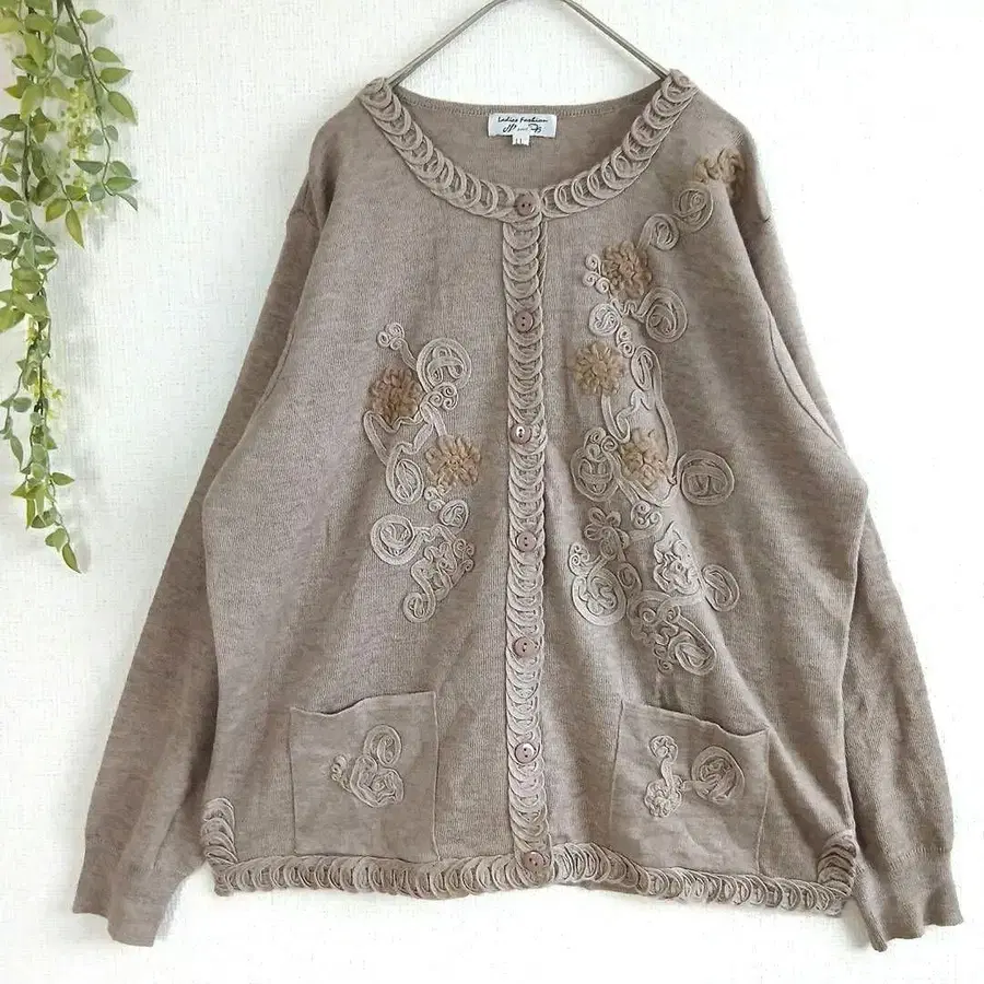 • 택 새상품 쿠레트 플라워 자수가 귀여운 니트 가디건 화이트 4L