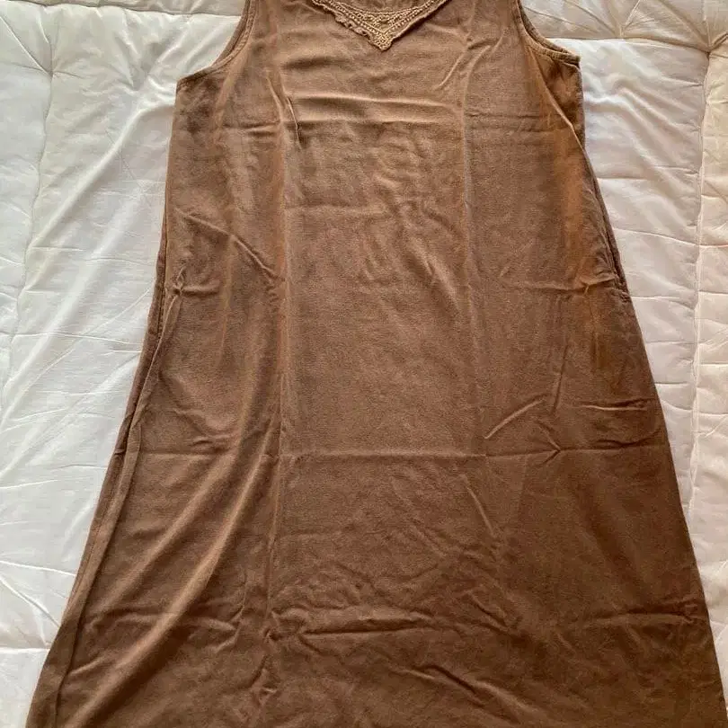 시삼 손자수 브라운 헴프 슬리브리스 티셔츠 원피스