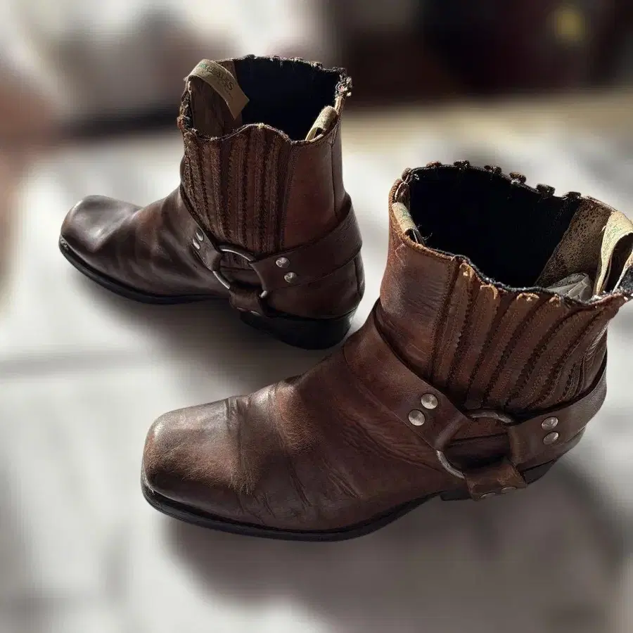 MMOGALES 가죽 브라운 부츠 버클 포함