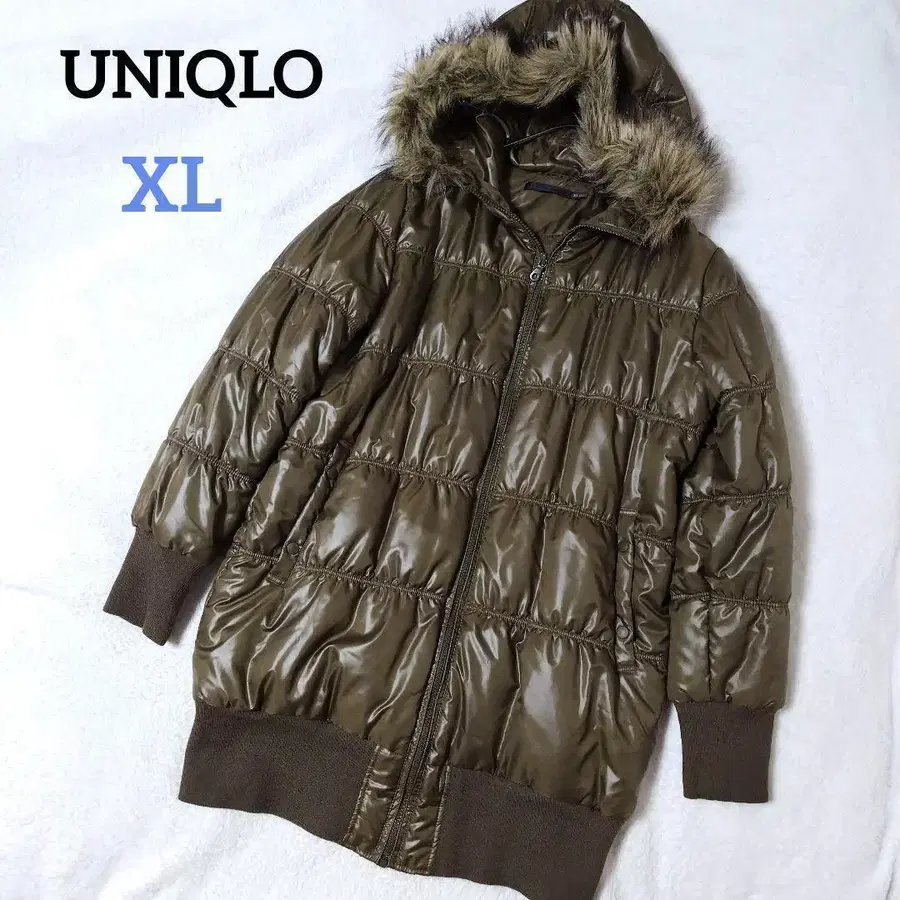 유니클로 충전솜 다운 자켓 광택 퍼 브라운 헤이세이 갸루 그런지 y2k