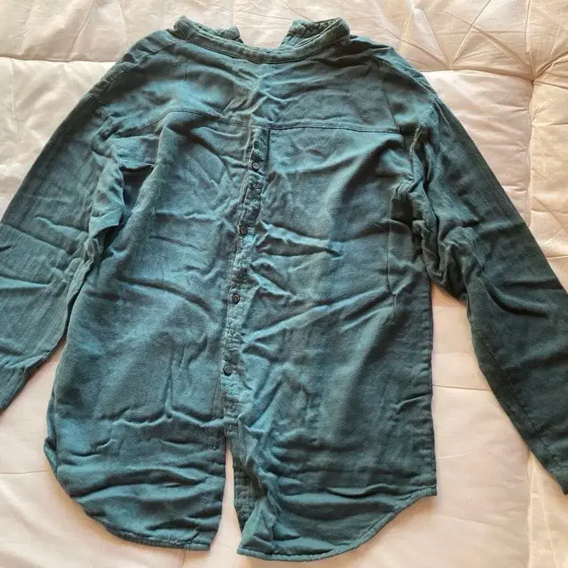 시삼 포근한 거즈 손자수 청록색 긴팔 셔츠