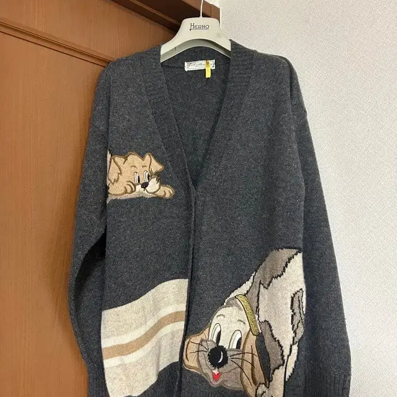 A. Alexander 강아지 자수 가디건 그레이 빈티지