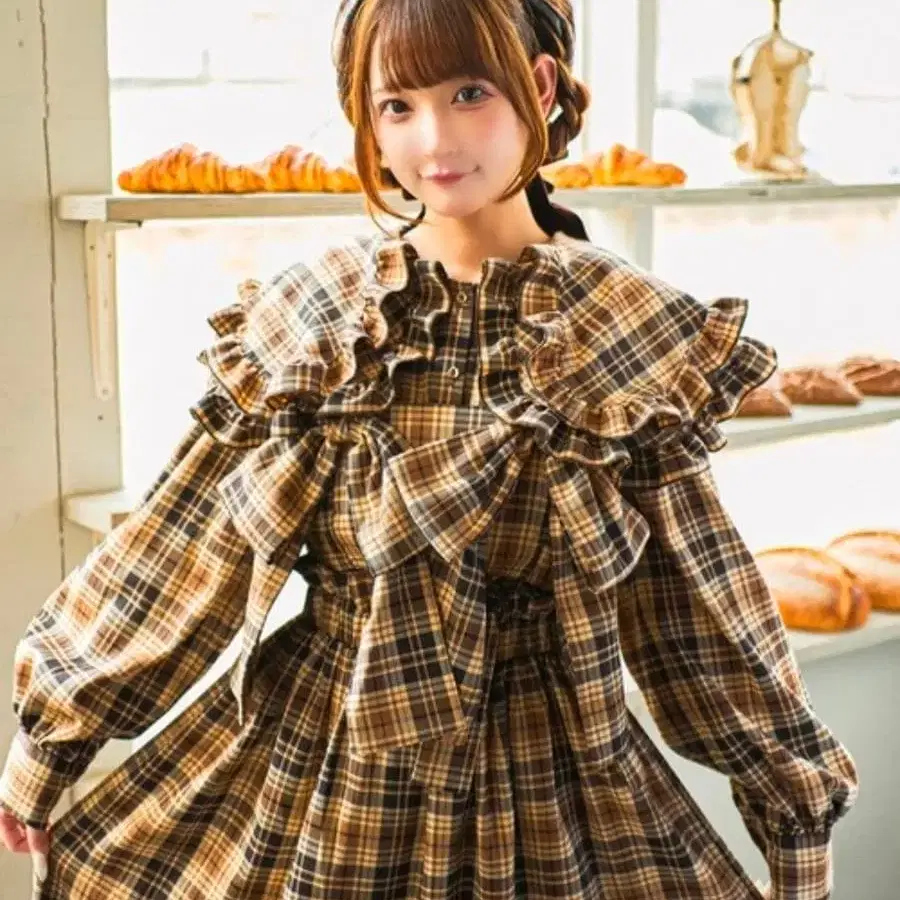 리본 뷔스티에 + 체크 오버롤 스커트 + 벨로아 리본 체크 베레모