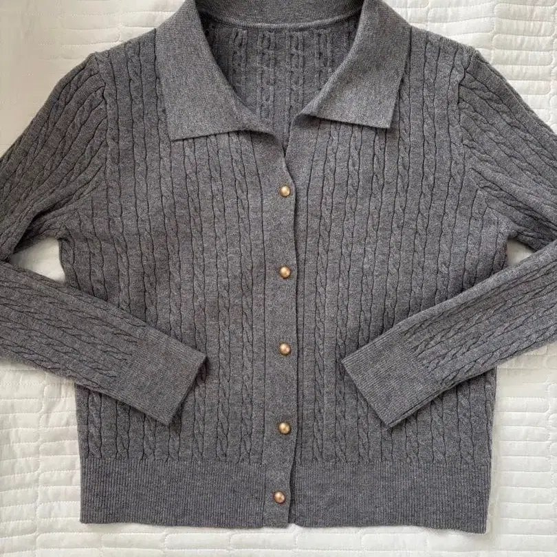 그레이 카라 부착 케이블 짜임 니트 가디건 M