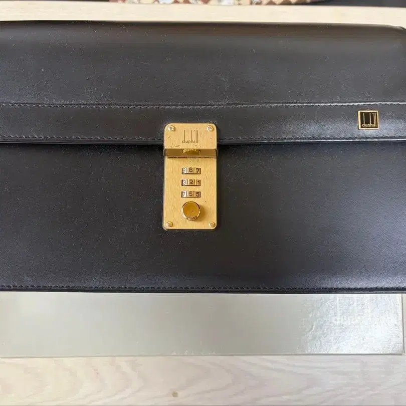dunhill (던힐)의 클러치백입니다. 심플하고 고급스러운 디자인에, 프론트의 골드 금장 장식이 악센트입니다.