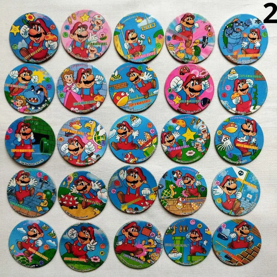2 쇼와 레트로 당시 물건 슈퍼 마리오 브라더스 딱지 원형 딱지 25장