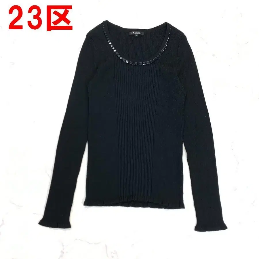 A6969 23구 긴팔 니트 스웨터 울 스터드 리브 블랙 38