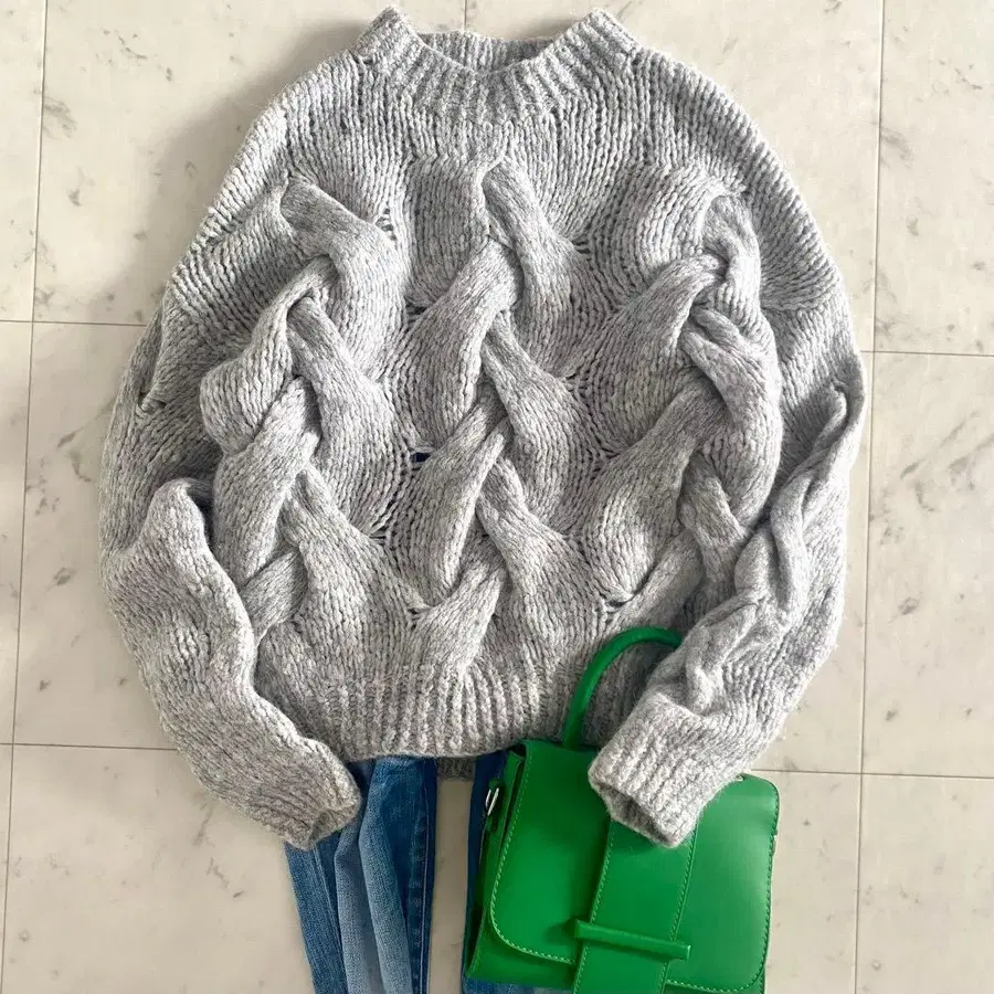 새상품급 알아바일 알파카울 굵게 짠 크루넥 케이블 니트 2