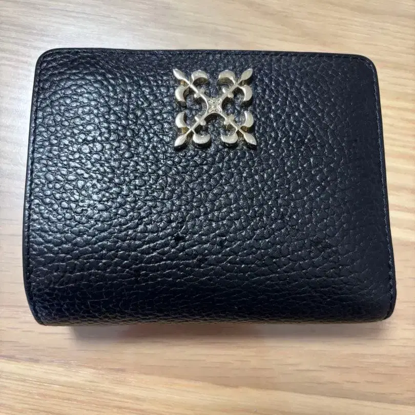 새상품급! russet 가죽제 접이식 지갑 블랙 골드 컬러 장식