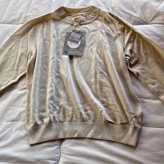 Sisam 포근한 오가닉 코튼 아이보리색 얇은 소재 긴팔 니트