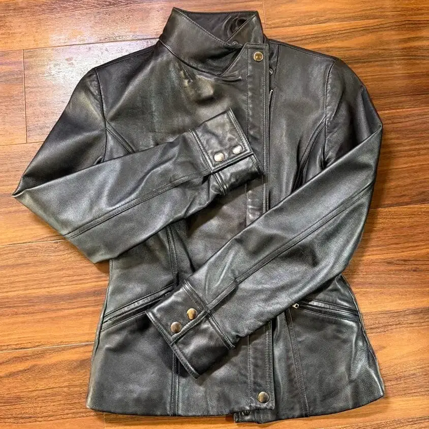 J&R 라무 가죽 자켓 싱글 라이더 블루종 블랙 M 사이즈