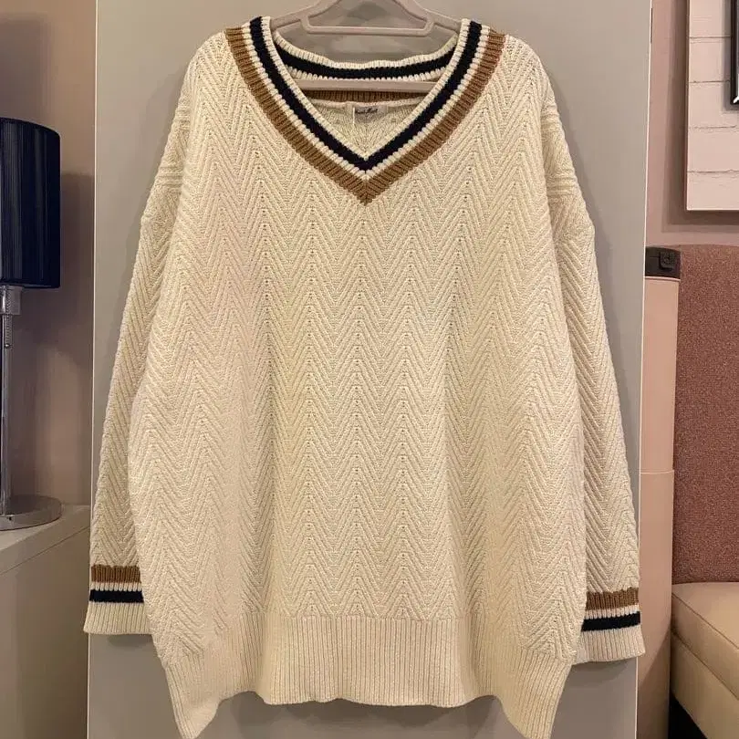 프리즈마트 헤링본 무늬 V넥 스웨터 아이보리