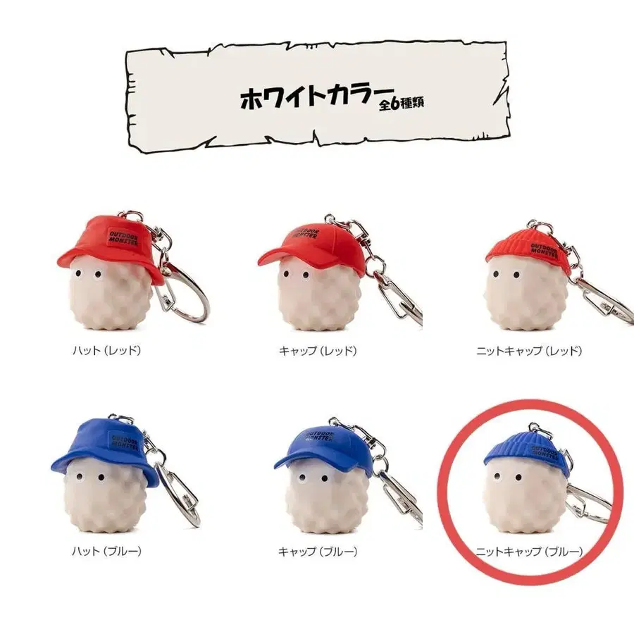 아웃도어 몬스터 마스코트 키링 화이트 니트 캡 파랑 2