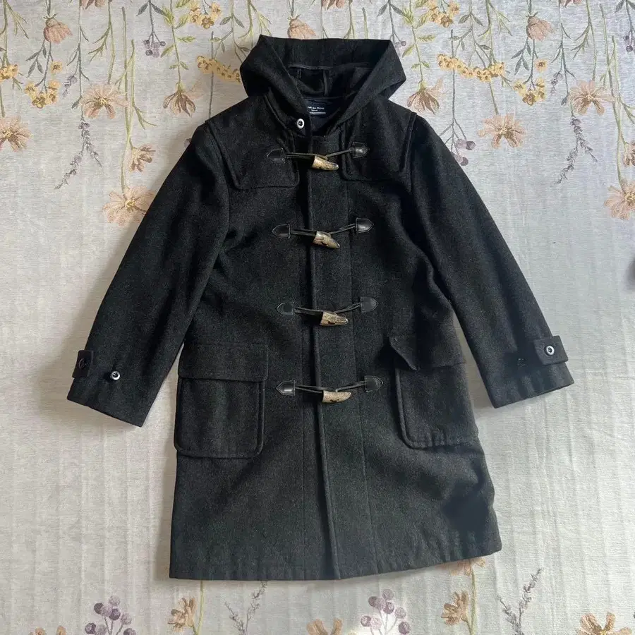 올리브 데 올리브 더플 코트 그레이 후드 부착