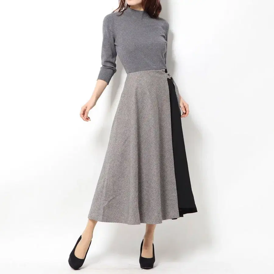 • 프레이 아이디 플레어 스커트 콤비 니트 원피스