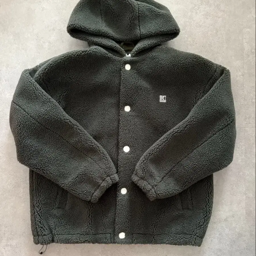 플리스 자켓 다크 그린 후드 부착