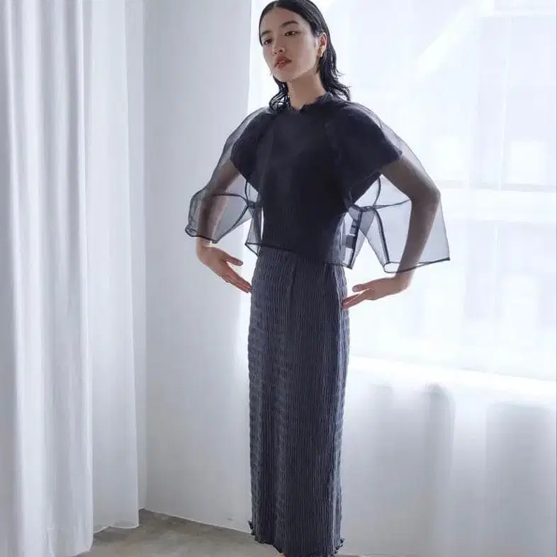 MEER. 셔링 프렌치 슬리브 드레스 차콜 그레이