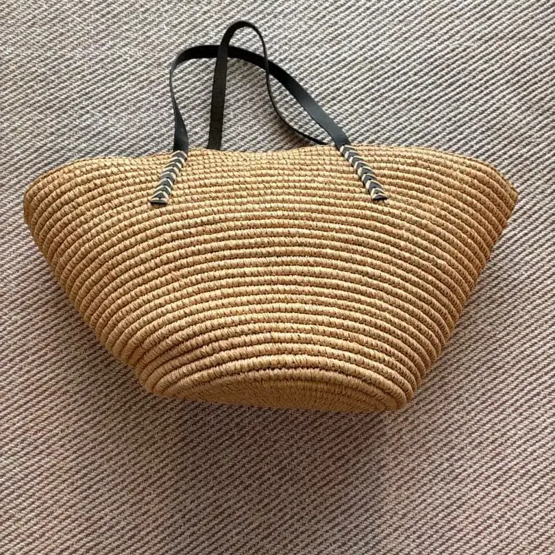 [산알시데] 라피아 바스켓백 물방울 패턴