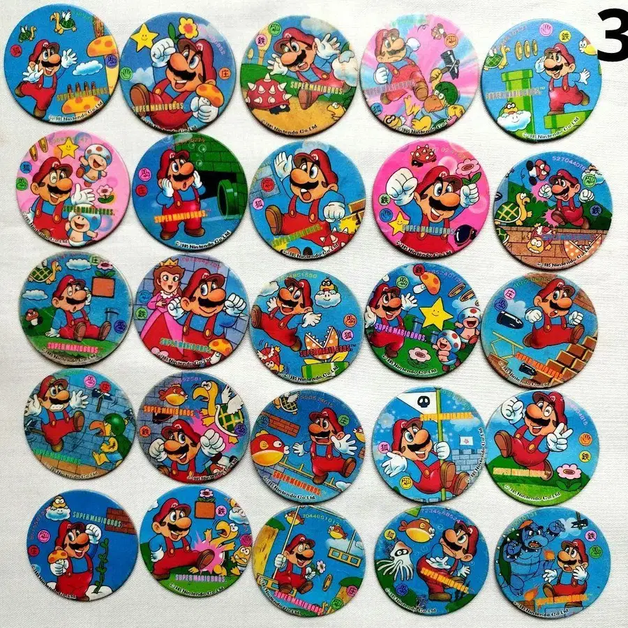 3 쇼와 레트로 당시 물건 슈퍼 마리오 브라더스 딱지 둥근 딱지 25장